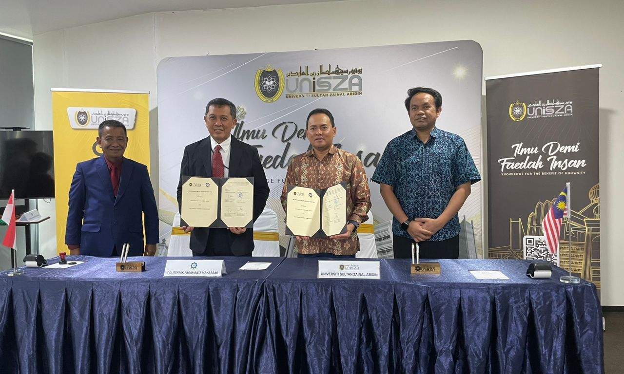 Politeknik Pariwisata (Poltekpar) Makassar menandatangani Nota Kesepahaman (MoU) bersama Fakultas Ilmu Sosial dan Ilmu Politik (FISIP) Universitas Sultan Zainal Abidin (UniSZA), Kamis 24 Oktober 2024 di Putrajaya, Malaysia.