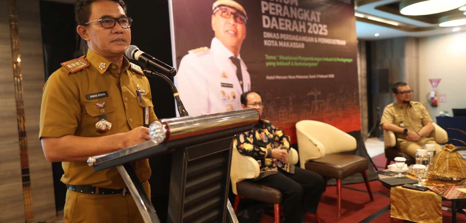 Pj Sekretaris Daerah Kota Makassar, Irwan Rusfiady Adnan, dalam sambutannya menegaskan pentingnya peran Dinas Perdagangan dan Perindustrian dalam mendukung pertumbuhan ekonomi kota.
