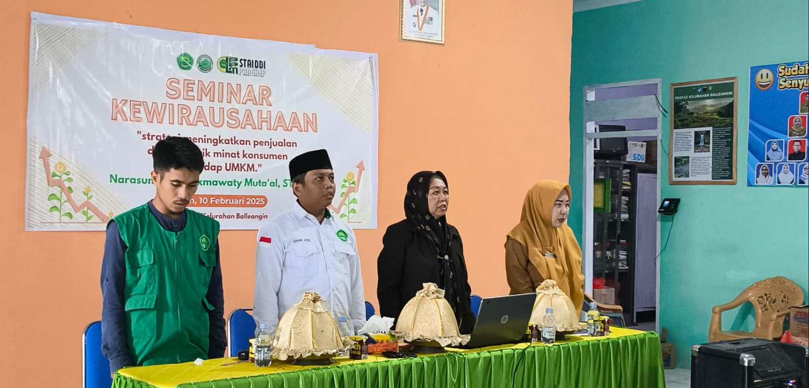 Pangkep — Mahasiswa KKN Angkatan XX Sekolah Tinggi Agama Islam Darud Da’wah Wal Irsyad ( STAI DDI ) PANGKEP Posko Kelurahan Balleangin Kecamatan Balocci kabupaten Pangkep, menggelar Seminar Kewirausahaan dengan tema Strategi Meningkatkan Penjualan dan Menarik Minat Konsumen Terhadap UMKM, yang menghadirkan narasumber Rukmawaty Muta’al, ST., MM yang juga merupakan dosen Program Studi Ekonomi Syariah STAI DDI PANGKEP.
