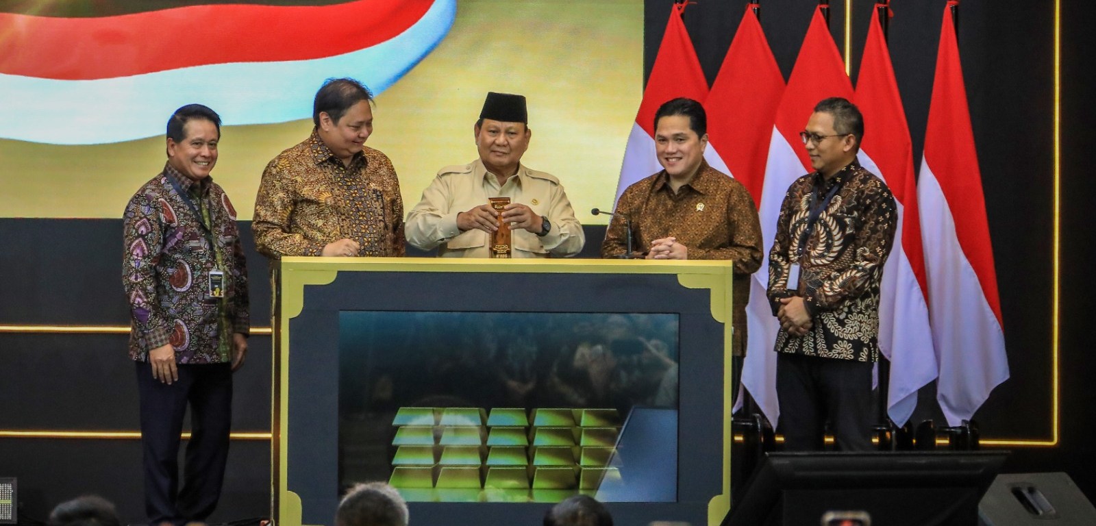 Peresmian itu ditandai dengan memasukkan batangan emas ke dalam treasure box oleh Presiden Prabowo Subianto.