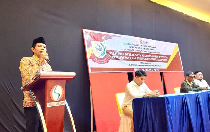 Makassar,–Anggota DPRD Kota Makassar, Idris menggelar sosialisasi penyebarluasan peraturan daerah (Perda) Nomor 9 tentang Perlindungan dan Pengelolaan Lingkungan Hidup di Hotel Sarison, Jalan Perintis Kemerdekaan, Selasa (25/3/2025).