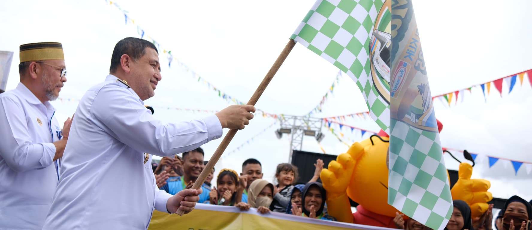 Acara pelepasan ditandai dengan pengibaran bendera oleh Wali Kota Makassar, didampingi Kepala Dinas Perhubungan Pemprov, perwakilan Indomaret dan Pelindo.