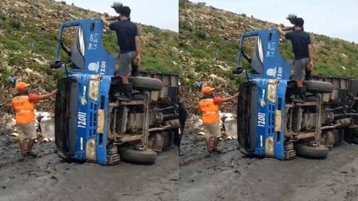 Truk tersebut terlihat berada di kawasan TPA Tamangapa, Kecamatan Manggala.