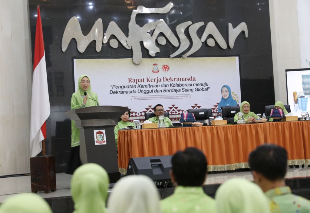 Makassar,— Ketua Dewan Kerajinan Nasional Daerah (Dekranasda) Kota Makassar, Melinda Aksa membuka dan memimpin Rapat Kerja Dekranasda Tahun Anggaran 2025 di Baruga Anging Mammiri, Kamis (5/6/2025).