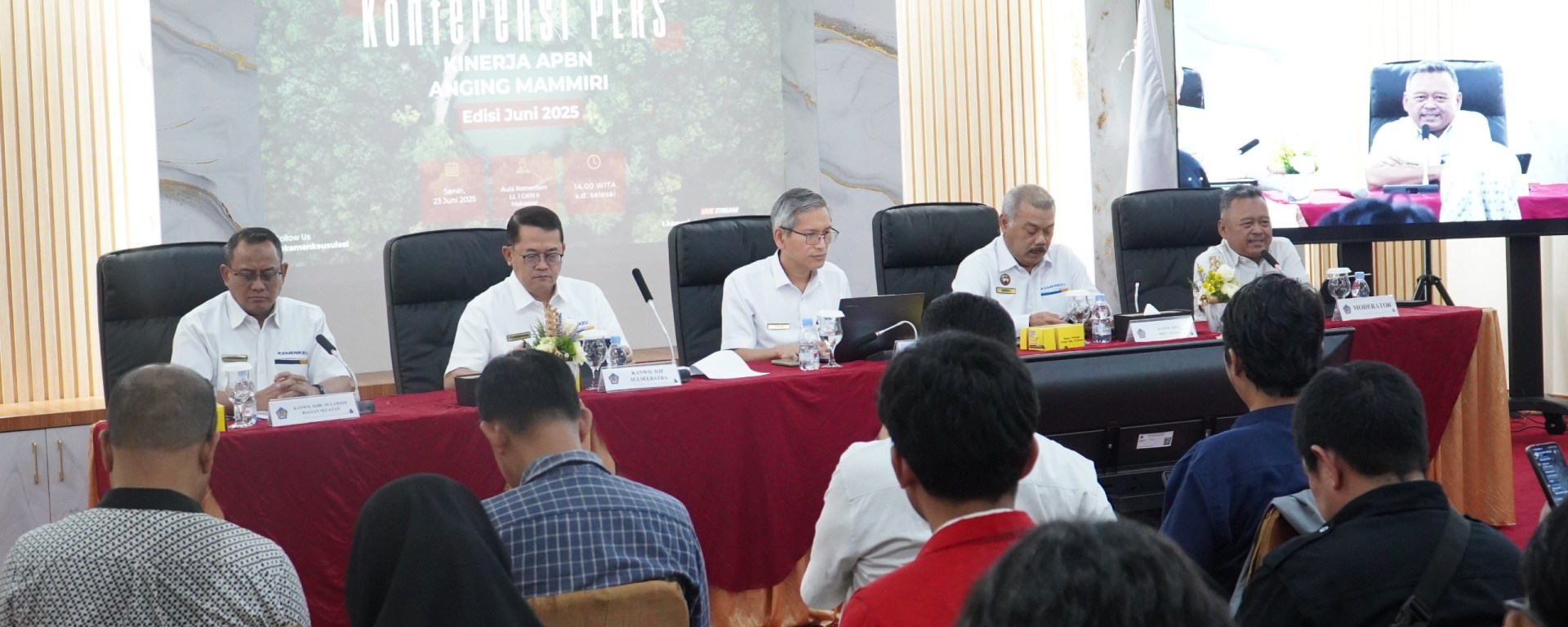 Makassar,–-Kantor Perwakilan Kementerian Keuangan Provinsi Sulawesi Selatan menggelar konferensi pers rilis kinerja Anggaran Pendapatan dan Belanja Negara (APBN) regional Sulawesi Selatan hingga 31 Mei 2025. Acara yang berlangsung di Gedung Keuangan Negara Makassar ini juga disiarkan langsung melalui kanal YouTube resmi Kemenkeu.