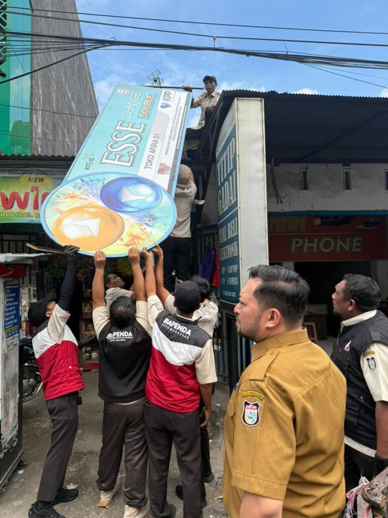 Makassar,–Pemerintah Kota Makassar, melalui Badan Pendapatan Daerah (Bapenda) kembali melakukan langkah tegas dengan menertibkan reklame yang tidak memiliki izin maupun reklame yang melanggar aturan perizinan.