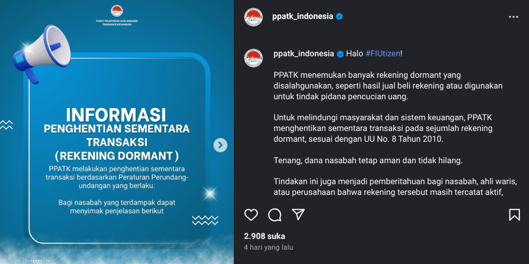 Pengumuman itu disampaikan PPATK melalui saluran resminya pada IG @ppatk_indonesia, Kamis (24/7/2025) lalu.