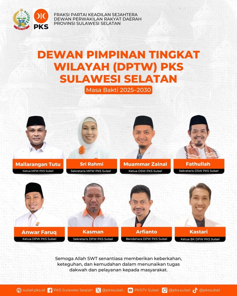 Makassar,-–PKS Sulawesi Selatan telah merampungkan regenerasi kepengurusan secara tertib dan tanpa konflik. Partai yang mengusung nilai-nilai Islam ini tengah mempersiapkan diri menghadapi tantangan politik, termasuk Pemilu 2029, dengan menyusun struktur kepemimpinan yang solid.