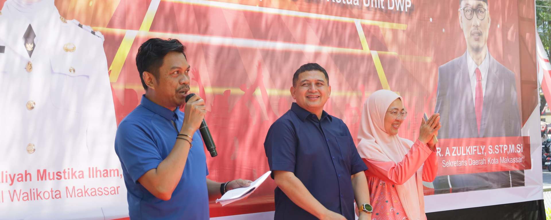 Wali Kota Makassar, Munafri Arifuddin, didampingi Ketua TP PKK Makassar, Melinda Aksa Mahmud, Sekretaris Daerah, Zulkifly Nanda, serta Ketua Tim Ahli Pemkot, Hudli Huduri, tampil memukau membawakan lagu “Hip Hip Hura”, tembang legendaris ciptaan Adjie Soetama yang dipopulerkan Chrisye.
