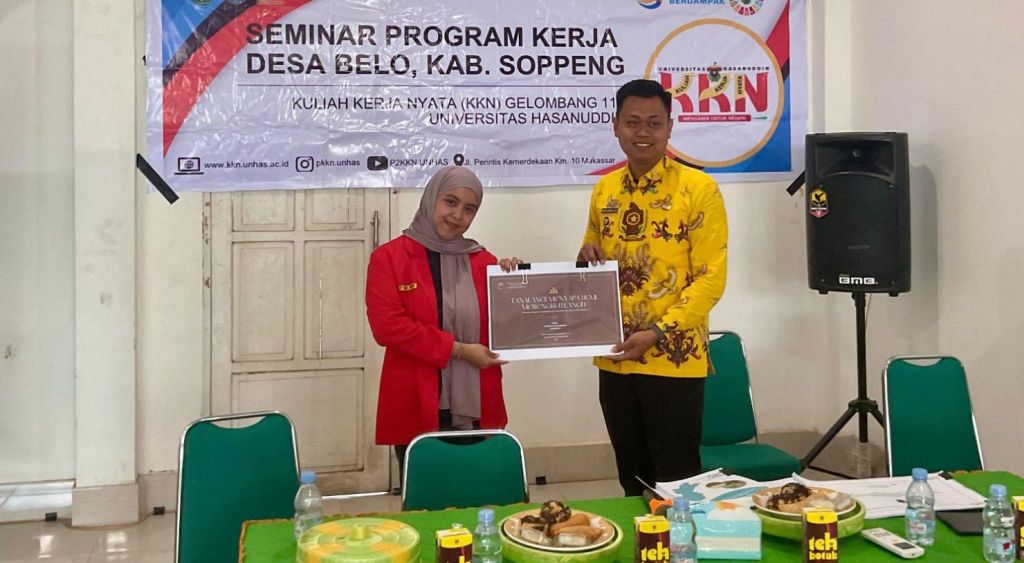 Belo, Soppeng – Mahasiswa Kuliah Kerja Nyata Tematik (KKN-T) Literasi Gelombang 114 Universitas Hasanuddin (Unhas) menggelar Seminar Hasil Rancangan Sarana Agrowisata Desa Belo pada Kamis, 14 Agustus 2025. Acara yang berlangsung di Gedung Kemasyarakatan Desa Belo ini dihadiri oleh Kepala Desa Belo, Wahyu Asharie, S.IP, beserta perangkat desa, Ketua BPD, Ketua RT/RW, kelompok tani, serta tokoh masyarakat setempat.
