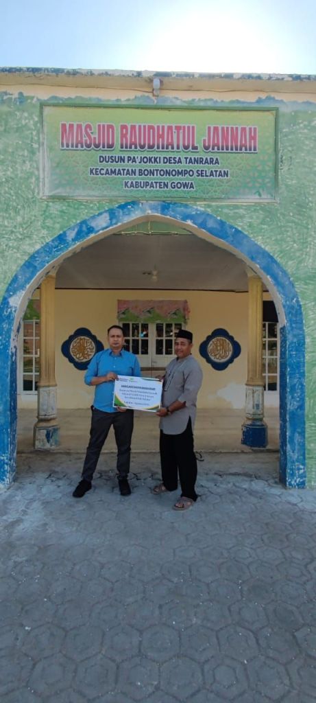 Gowa,–PT Pegadaian melalui program Tanggung Jawab Sosial dan Lingkungan (TJSL) menyalurkan bantuan untuk renovasi Masjid Raudhatul Jannah yang berada di Kecamatan Bontonompo Selatan, Kabupaten Gowa.