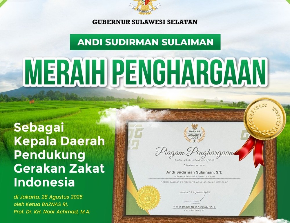 Jakarta,–Gubernur Sulawesi Selatan, Andi Sudirman Sulaiman, kembali meraih penghargaan tingkat nasional. Ia memperoleh Baznas Awards 2025 dalam kategori Kepala Daerah Pendukung Gerakan Zakat Indonesia.