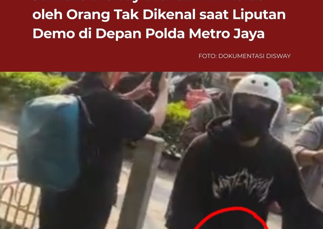 Jakarta,–Salah seorang wartawan Disway.id, Rafi Adhi, diduga mengalami terror oleh orang tak dikenal (OTK). Dia disiram air keras saat meliput aksi demonstrasi di depan gedung Polda Metro Jaya, Jumat (29/8/2025) lalu.