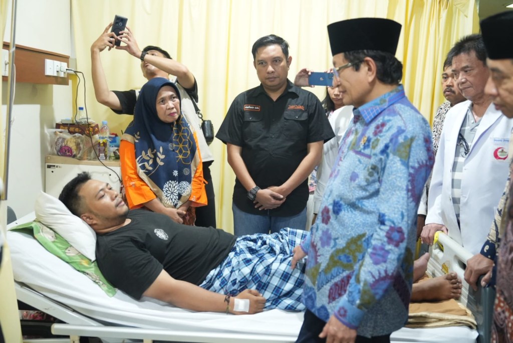Menag menjenguk tiga pasien yang masih dirawat di RS Grestelina, yakni Herianto (28), warga Lembang Utara; Arief Rahman Hakim (28), warga Jalan Kenangan 2; dan Sahabuddin (47), warga BTN Mangga Tiga. Kepada ketiganya, Menag menyerahkan sejumlah bantuan sosial dan memberikan semangat kepada keluarga.