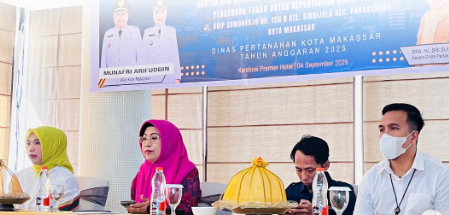 Makassar,—Dinas Pertanahan Kota Makassar melaksanakan musyawarah penetapan bentuk dan besaran ganti kerugian untuk pengadaan tanah bagi kepentingan umum yang berlokasi di Jl. Urip Sumoharjo No. 156 B, Kelurahan Sinrijala, Kecamatan Panakkukang.