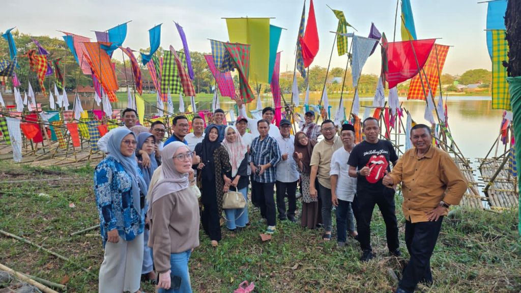 Rektor naik ke rakit bersama Prof Ucu dan Salahuddin Alam. Ia memeriksa beberapa ikatan rakit. “Kuat ini ya,” kata rektor. “Iye kuat,” jawab Prof Ucu.