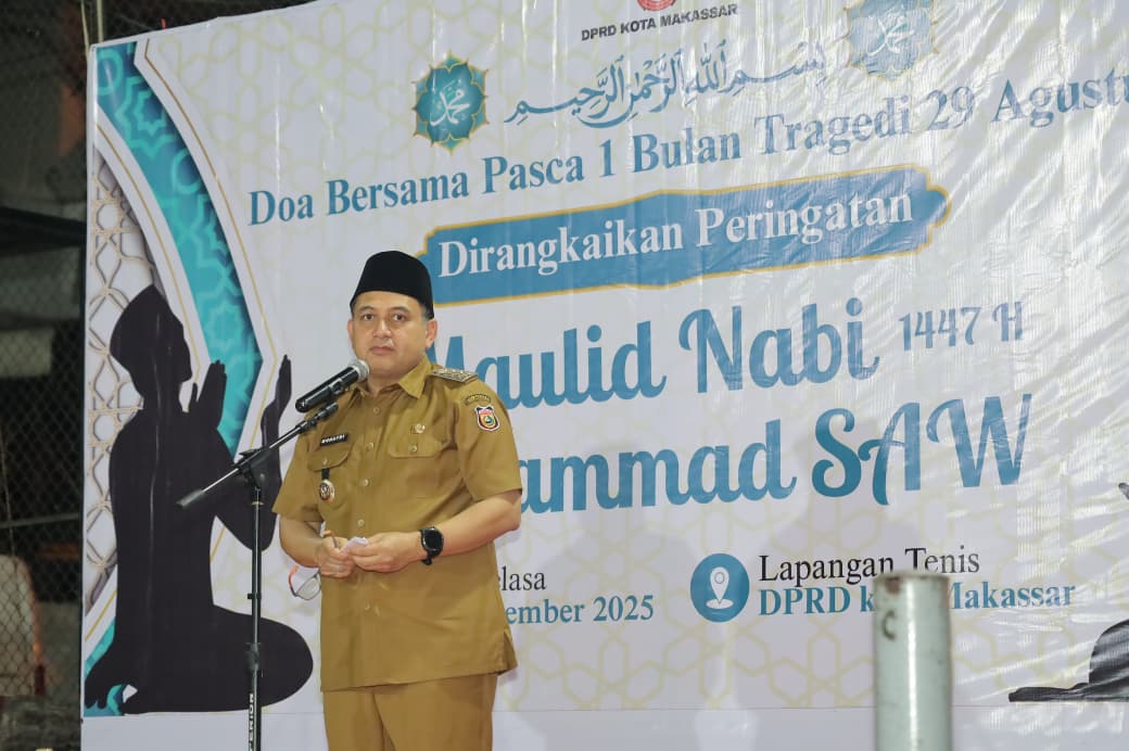 Hal itu disampaikannya saat menghadiri menghadiri doa bersama untuk korban di DPRD Makassar, sekaligus perayaan Maulid Nabi Besar Muhammad SAW, yang digelar di Lapangan Tenis DPRD Makassar, Jl. AP Pettarani, Selasa (30/9/2025) malam, bersama jajaran legislatif, Senin (30/9/2025).