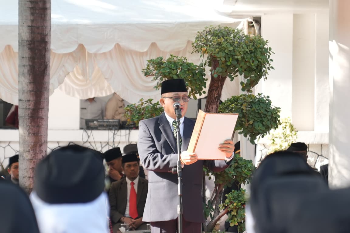 Suasana menjadi semakin khidmat ketika naskah Pembukaan Undang-Undang Dasar 1945 dibacakan oleh Asisten I Bidang Pemerintahan dan Kesra.