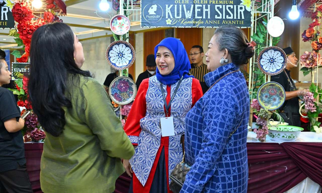Aliyah Mustika Ilham menyapa pengurus Dekranasda yang menjaga booth sambil meninjau produk kerajinan. Ia juga membeli sejumlah produk UMKM binaan sebagai bentuk apresiasi dan dukungan bagi para pelaku usaha lokal.