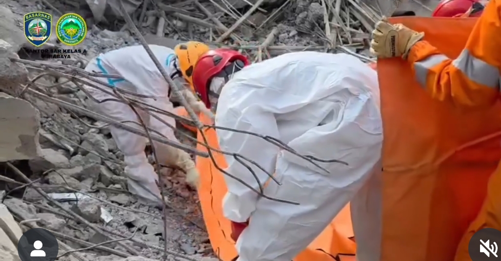 “Tim SAR perlu mengangkat puing-puing reruntuhan, memotong rangka-rangka, baru kemudian bisa mengevakuasi korban dari timbunan material,” jelas Nanang sebagaimana dikutip dari akun IG@kantorsar_surabaya.