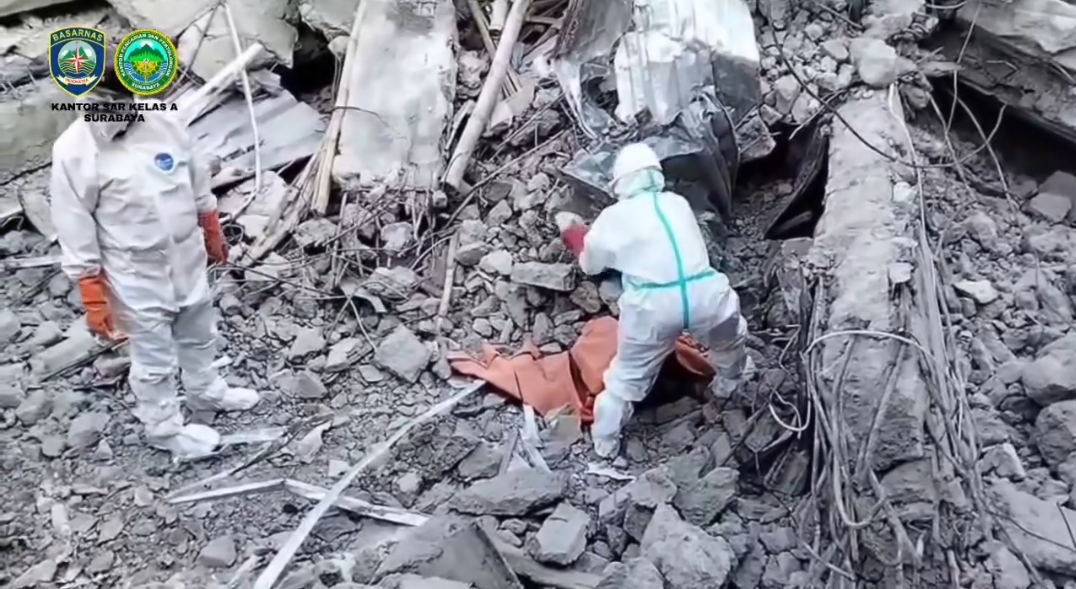 Seluruh jenazah yang berhasil dievakuasi selanjutnya dibawa ke RS Bhayangkara Surabaya untuk proses identifikasi oleh Tim DVI Polda Jawa Timur. Dalam operasi SAR ini, unsur SAR yang terlibat antara lain BASARNAS, BNPB, Kantor SAR Surabaya, BSG, Kantor SAR Semarang, Kantor SAR Yogyakarta, BPBD Prov Jatim, unsur TNI dan POLRI, BPBD kab Sidoarjo, BPBD kota Surabaya, SAR Surabaya, BDRT 27, PMI, DAMKAR kab Sidoarjo, DAMKAR kota Surabaya, PT Gun, PT Freeport Indonesia, PT Bumi Suksesindo, Rendan, TSA Gerpik, SAR MTA, Banser, DMC, Hujung Galuh Rescue, Kanjuruhan Rescue, IOF Rescue, Rescue 79, RESOB, BAZNAS, LPBI NU, SDI, SAR Astra, MDMC, Jasa Marga, BAZNAS, Resita, Rescue 020, Relawan Sese, Semar, SAR Kanjuruhan, SAR Relindo, BJC, RBC, Nawasena, dan sejumlah organisasi potensi SAR lainnya. (*)