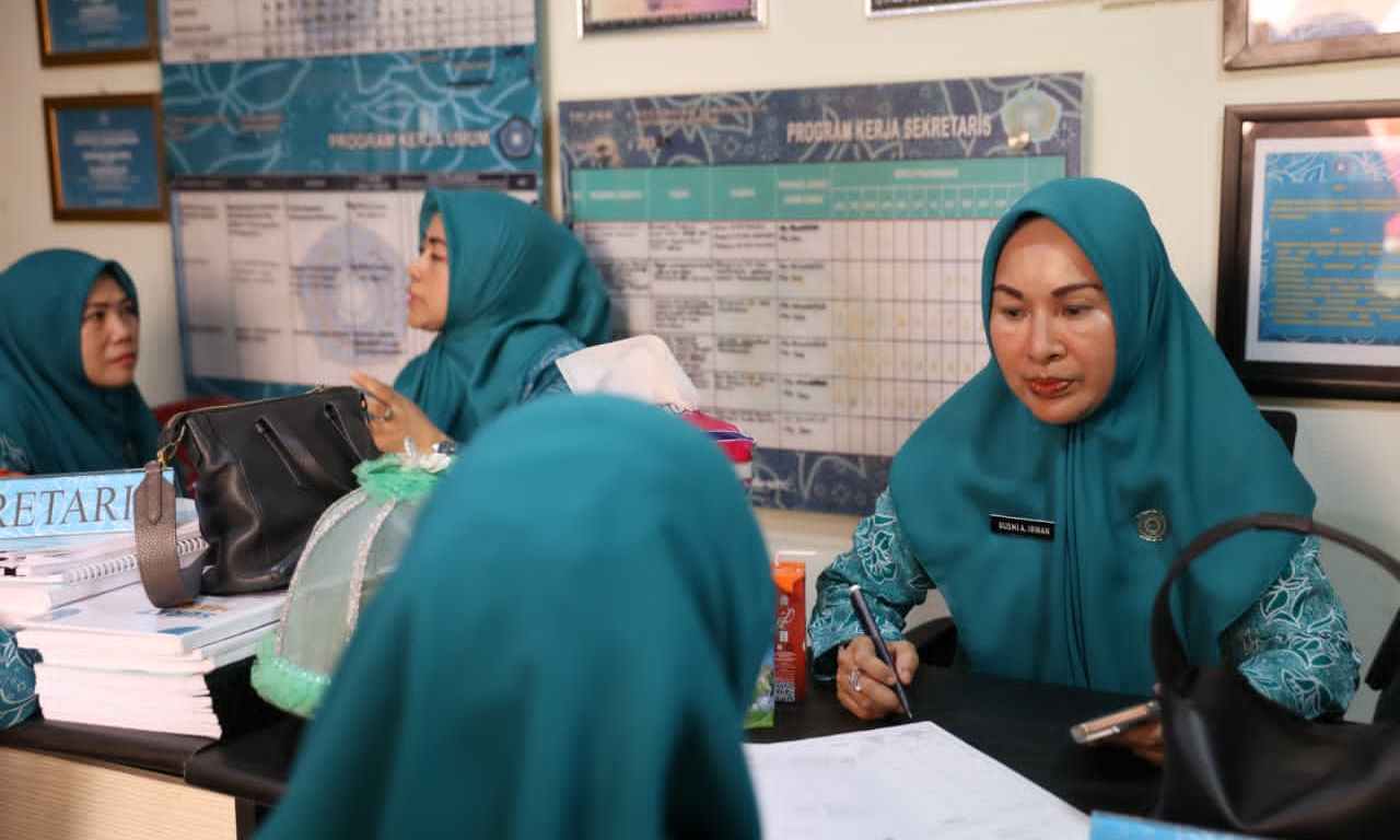 Pengurus TP PKK Kota Makassar kemudian melanjutkan kegiatan SMEP di Sekretariat PKK Kecamatan Tamalanrea dengan meninjau langsung dokumen administrasi, buku data kelompok kerja, serta hasil kegiatan di tiap kelurahan.