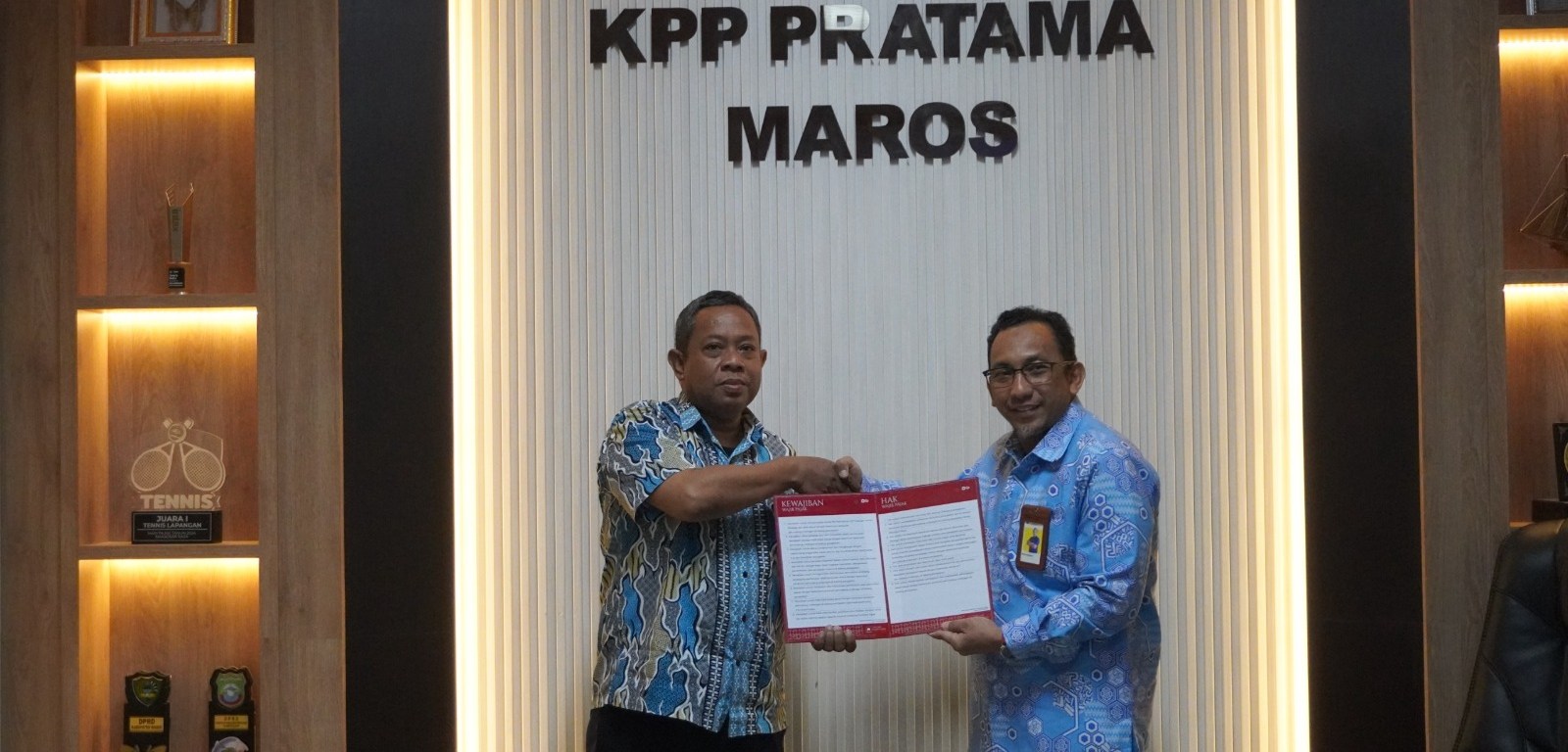 Acara penyerahan dilakukan secara simbolis oleh Kepala KPP Pratama Maros, Khris Rolanto, kepada Abdul Jalil, selaku Bendahara Dinas Perhubungan Kabupaten Pangkajene dan Kepulauan, bertempat di ruang rapat KPP Pratama Maros