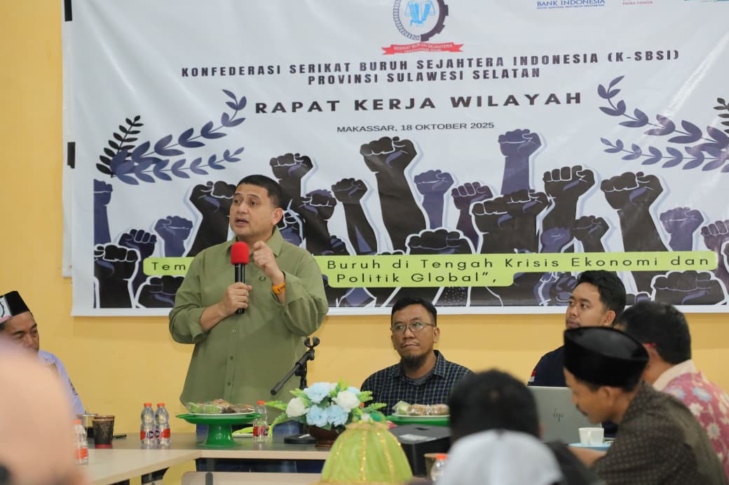 Hal tersebut disampaikan saat memberikan sambutan pada Rapat Kerja Wilayah (Rakerwil) Konfederasi Serikat Buruh Sejahtera Indonesia (KSBSI) Provinsi Sulawesi Selatan Tahun 2025 yang digelar di Gedung PGIW, Jalan Abdurrahman Basalamah, Makassar, Sabtu (18/10/2025).