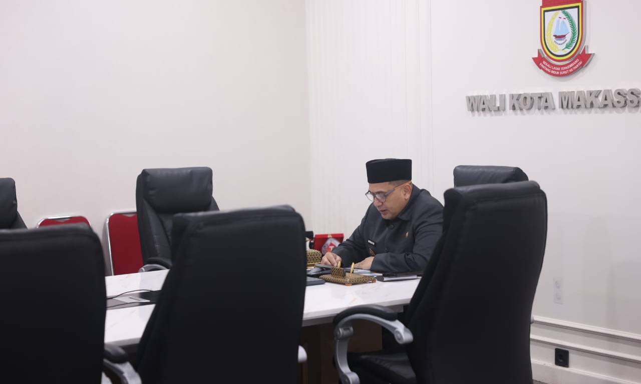Makassar,–Wali Kota Makassar, Munafri Arifuddin, menghadiri Rapat Paripurna Keenam Masa Persidangan Pertama Tahun 2025/2026 DPRD Kota Makassar melalui Zoom Meeting dari Ruang Rapat Kantor Balai Kota Makassar, Selasa (21/10/2025).