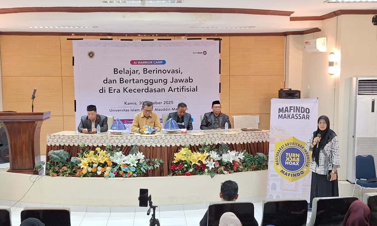 Makassar,–Kecerdasan buatan atau Artificial Intelligence (AI) kini menjadi kompas baru pengetahuan. Namun tanpa etika dan tanggung jawab, teknologi ini justru berpotensi menyesatkan. Menyadari pentingnya literasi digital dan kesadaran etis di era AI, Masyarakat Anti Fitnah Indonesia (MAFINDO) Makassar bekerja sama dengan Google Initiative menggelar AI Warrior Camp di Kampus 2 UIN Alauddin Makassar, Kamis (30/10/2025).