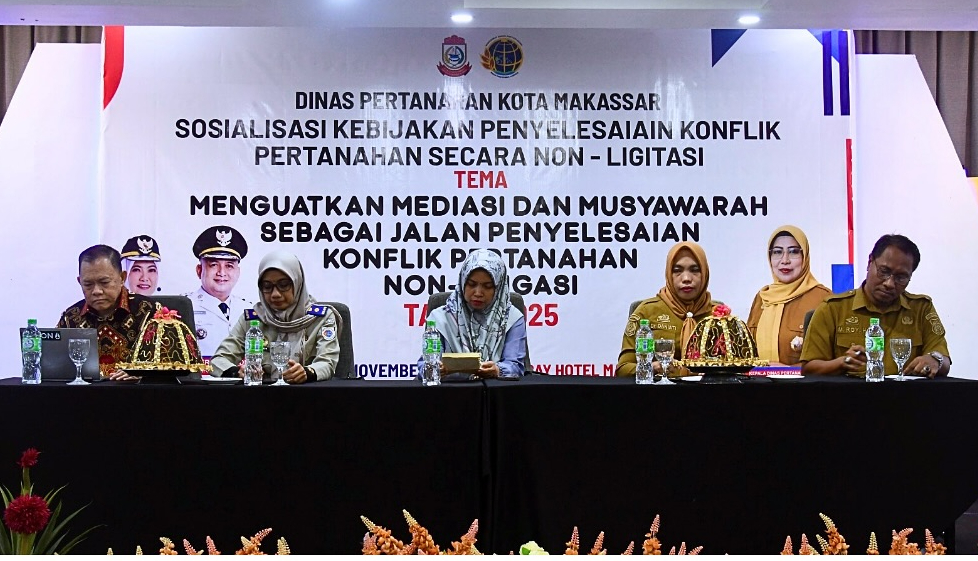 Makassar,–-Dalam upaya mengedepankan jalan damai dan kolaboratif menyelesaikan sengketa pertanahan, Dinas Pertanahan Kota Makassar menggelar acara Sosialisasi Kebijakan Penyelesaian Konflik Pertanahan Secara Non-Litigasi pada Rabu (5/11/2025). Kegiatan yang berlangsung di Hotel Royal Bay Makassar ini dihadiri oleh berbagai pemangku kepentingan, menandai komitmen pemerintah kota dalam mencari solusi di luar pengadilan.