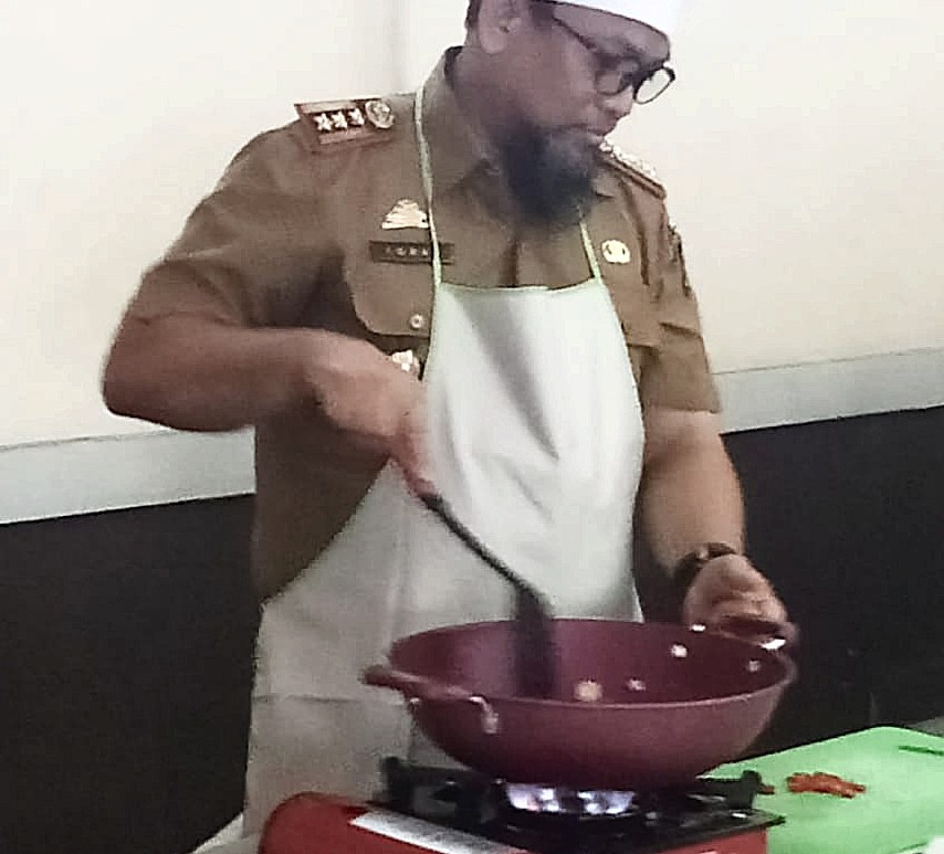 Kepala Dinas Pendidikan Sulsel, Iqbal Nadjamuddin, yang turut unjuk kebolehan dalam memasak. Lanjutkan membaca Begini Gaya Kadisdik Sulsel Saat Masak di Lomba Memperingati Hari Guru Nasional