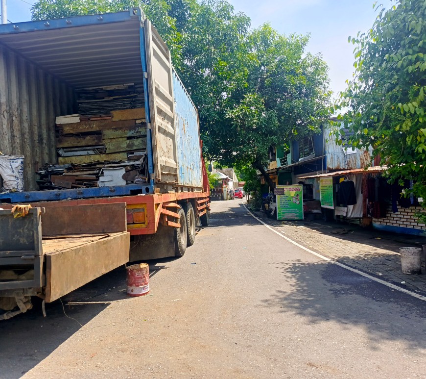 Truk Kontainer Parkir di Lorong, Ganggu Aktivitas Warga Jl. Urip Sumoharjo V